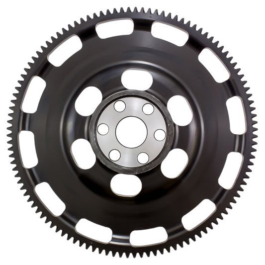 Dramatically improved engine response and acceleration, mild to moderate gear rattle; Heat-treated forging for strength and toughness, induction-hardened ring gears for maximum life; One piece construction allows less opportunity for failure and provides uniform efficient heat transfer from the clutch disc. No more warped inserts or loose ring gears; Recommended for race use; Forged, CNC machined and dynamically computer balanced for smooth high RPM reliability