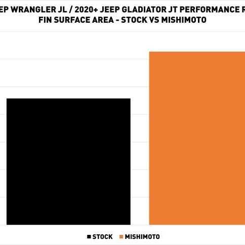 but it’s not perfect.----The 2018+ Jeep Wrangler JL has one of the most cramped cooling stacks we’ve seen in a modern vehicle, especially in the 2.0L spec with the additional heat exchanger for the turbo system. That cramped cooling stack means the JL needs an efficient radiator, and the stock radiator often falls short. Luckily, Mishimoto has developed a performance radiator that makes the most of the cramped space in the front of the JL.----This Mishimoto performance radiator for the 2018+ Jeep Wrangler JL is designed to make the most of every inch of the Wrangler’s cooling stack while withstanding the rigors of off-road (and everyday) life. Our radiator features an oversized core that’s 51 percent larger than stock, with a 38 percent greater coolant capacity to effectively cool your engine, even at low speeds. The 37 percent increase in fin surface area and oversized single-row design means that every square inch of core is used to transfer heat away from your engine.----Wranglers are known for their durability and our radiator is built to match. The full-aluminum, TIG-welded end tanks are designed to withstand vibration and repeated heat cycles without cracking or leaking. To add even more durability, we've constructed the core with extruded and strutted tubes that resist chassis flex on the trail. Like all our Wrangler products, this 2018+ Jeep Wrangler JL performance radiator is backed by our Mishimoto Lifetime Warranty, making it as dependable as your Jeep.