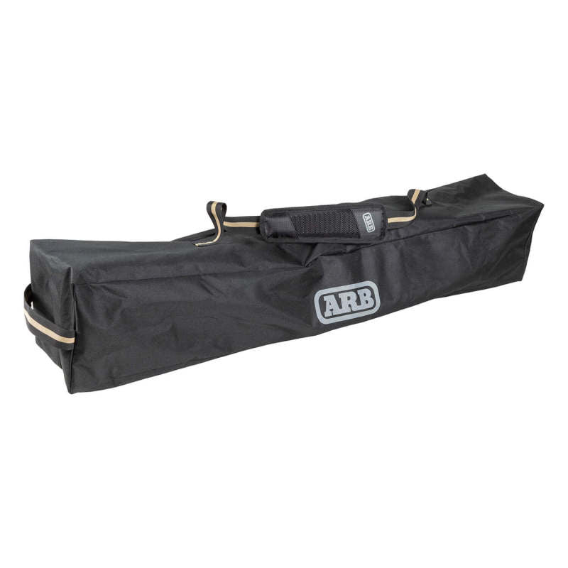 The ARB Pinnacle Camp Chair offers a premium seating experience when traveling. It features a sturdy, sleek black steel frame with contrasting charcoal brackets. Its taller back has a quick-release bracket on the rear, making it easier and faster to fold down when you're ready to break camp. The chair's body is made from 600D polyester and 420D ripstop panels and features a tonal print and internal padding. Its extra wide soft touch armrests provide ultimate comfort when in use. Storage is abundant with a rear mesh pocket, a built-in side panel with a cup holder, and additional pockets. To top it all off, the chair has a spacious 600D polyester carry bag featuring webbing straps and a premium shoulder pad for easy storage and carrying.