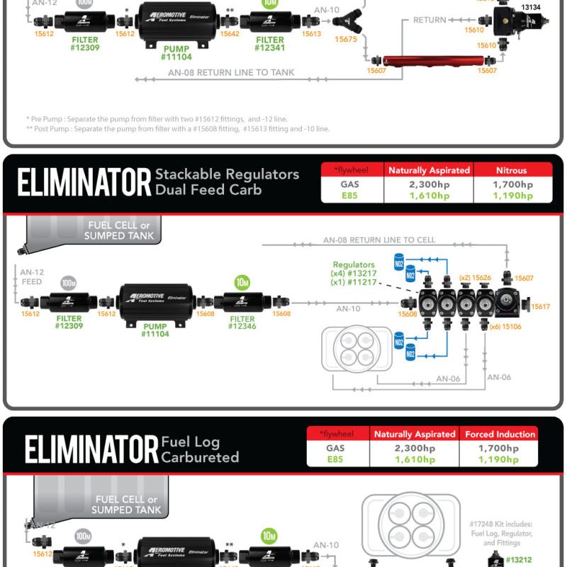This continuous duty 'street warrior' supports big horsepower and maintains the drivability necessary for a true high-performance street car. Designed for high horsepower street/strip applications, EFI or Carbureted, it features our 'dual chamber' pumping mechanism. Fuel Injected Engines: up to 1900 HP naturally aspirated and up to 1400 HP forced air induction. Carbureted Engines: up to 2300 HP naturally aspirated and up to 1700 HP forced air induction. ORB-12 inlet port and ORB-10 outlet port.