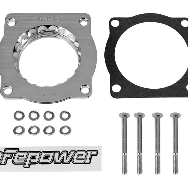 Silver Bullet throttle body spacers create turbulence in the air flow at the point just prior entry into the engine increasing horsepower, torque and improving throttle response and fuel efficiency. Silver Bullet throttle body spacers are constructed out of durable T-6061 billet aluminum and using a unique serrated/helix entry to create turbulence at the manifold while eliminating the annoying whistle found in other helix only throttle spacers.