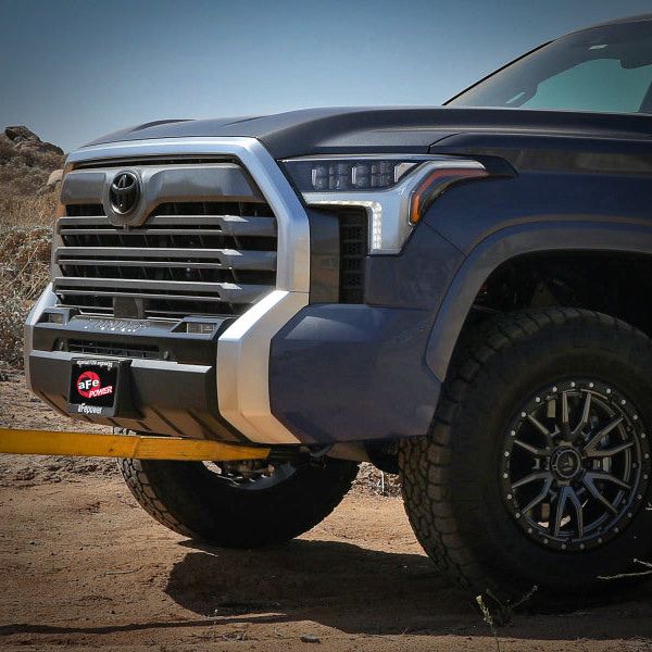 Add dedicated front recovery points to your Toyota Tundra. aFe POWER Tow Loops mount directly to the frame and are much safer than the factory tie-down loop when towing or recovering a stuck vehicle. The 3/4 IN solid steel loop is designed to safely withstand and distribute heavy loads allowing access to several recovery attachments for a strong and durable recovery point. Powder-coated red so they are easily recognized in the elements during off-road adventures. aFe POWER front tow hooks are constructed from 3/16 IN laser-cut, CNC machined steel brackets, and 3/4 IN solid steel bar. MIG welded for strength and durability. Bolts Directly onto the frame, using the front sway bar mounts with no drilling or modifications. Retains the front sway bar use while clearing the Active Aero front spoiler and factory bumper. (Patent Pending)