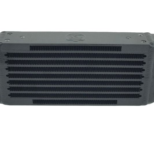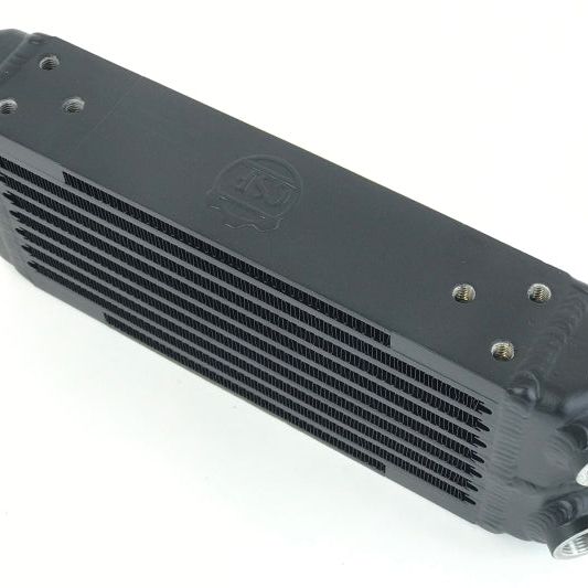 The unique design of CSF's oil cooler line has distinct advantages over conventional style oil coolers (plate-type/stacked oil coolers). The oil coolers can be placed in tighter spaces or different areas of the vehicle that don't have much vertical surface area. Longer rectangular sizes can also help with avoiding the stacking of too many coolers which may cause airflow issues to other components in the cooling system. Inlet/outlet port placement is much easier to route oil lines. Typical oil cooler lines have to be routed from different/opposite ends of the cooler often facing up or down. Usually one line has to run across from one side of the cooler to the other to then be routed together to the feed/return connection of the oil system. The CSF oil coolers are much more robust, durable, and can withstand a higher peak burst rate. This allows the cooler to be mounted in areas that might get high debris (front fascia, diff cooler, side vents, etc...). The CSF oil cooler is designed to withstand a tremendous amount of vibration and debris.