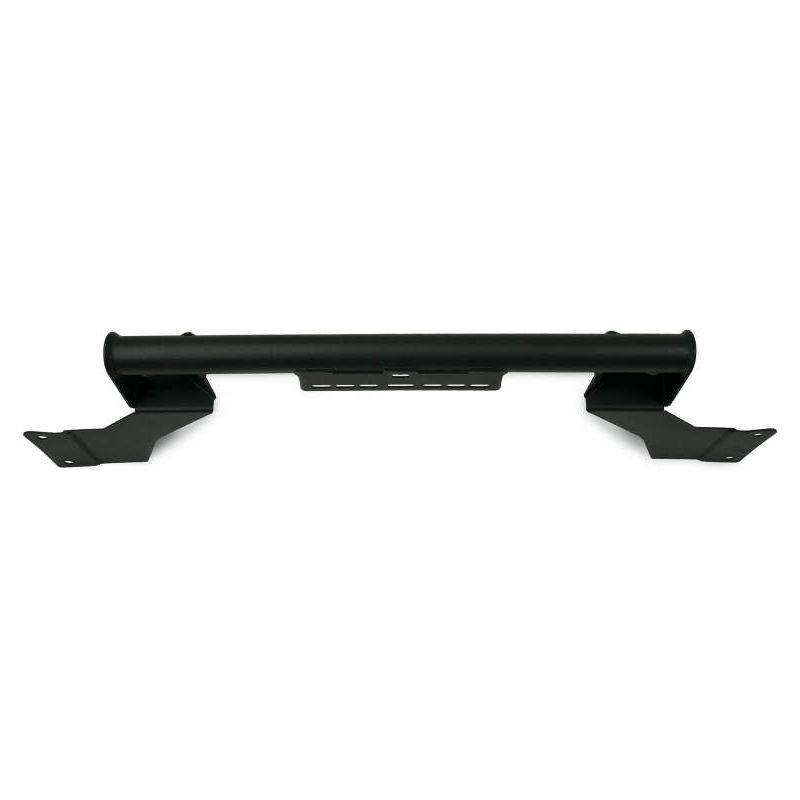 This crossbar was designed to provide your Bronco additional mounting options for rear facing LED lights and speaker cans, or a speaker bar. The bar measures 29-inches in total length, and is 2-inches in diameter. There is a 10-inch slotted flat mount in the middle of the bar. 4 holes, 2 towards each end, allow you to run wiring hidden inside the bar. It is finished in a Micro-Texture Black Powder Coat, which blends well with the OEM trim. There are several possible configurations you can run. Two speaker cans with roll bar clamps can be installed, with up to a 6-inch light bar or two 3-inch pod lights on the flat mount. You can run a 20-inch light bar across the length of the bottom if utilizing the back rail mounts on the bar. Alternatively, a speaker bar up to 28-inches wide with roll bar clamps can be mounted across the bottom of the bar.