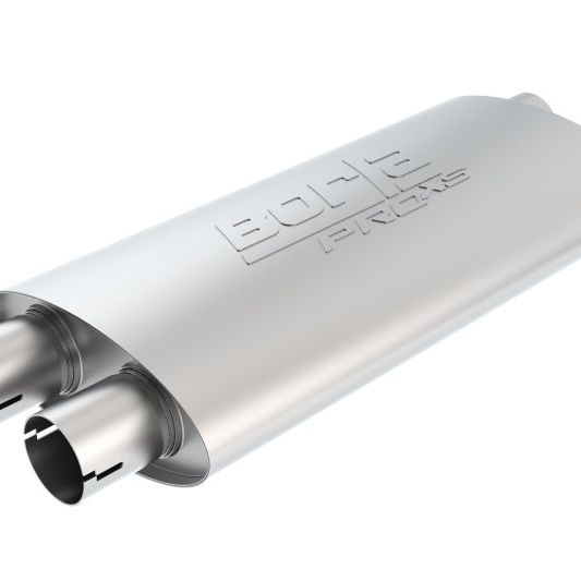 Dual inlet and dual outlet. Internal X-Pipe for increased performance and improved sound. Notched necks for easy clamp-on installation using 1" wide band style clamps (clamps not included). Reversible design for installation flexibility. High-quality T-304 Stainless steel will never rust. 100% welded construction for strength. Free Flow design for improved performance. High-temperature continuous-filament fiber (CFF) acoustic material for sound control. Natural mill finish can be brushed or polished prior to installation. Best of all, it's made in the USA and backed by Borla(r)'s Million-Mile warranty. Just what you'd expect from the world's most experienced (and most winning) exhaust brand.