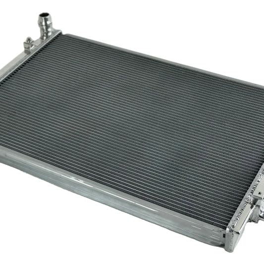 CSF has over 5 decades of experience manufacturing radiators. So when it comes to keeping your engine cool and your Audi/VW running at its best, a CSF High-Performance All-Aluminum Radiator is the obvious choice. Designed to perform on the street or at the track, a performance radiator is a must-have for both high horsepower builds as well as race vehicles which need added cooling performance in motorsports environments. The Triple-Pass Flow Structure allows the coolant to flow across the core of the radiator three times before exiting for lowest outlet temperatures possible. This radiator features a 2-Row core with CSF's exclusive B-Tube Technology: Unlike a regular oval shape "O" type radiator tube, CSF uses a specially engineered tube in the shape of a "B". These "B-tubes" are carefully formed and then brazed over the seam to seal. CSF is able to use thinner and lighter aluminum material (with better cooling efficiency) because this design is actually stronger than normal "O" shape tubes that are welded. The design (inlet in the middle of the tube that is seam brazed) increases the heat transfer surface area of the tubes by approximately 15% over regular tubes - producing the efficiency of two smaller tubes vs. one large tube within the same space criteria. With "B-tubes" you are able to get "dual liquid laminar flow". CSF also uses ultra efficient multi louvered fins that are carefully and precisely aligned to maximize airflow through each radiator core. Fin specifications are carefully measured and calculated for each application, and tested for maximum heat rejection efficiency in our wind-tunnel lab.