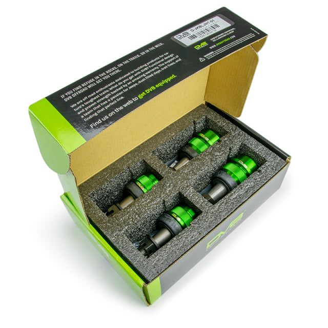 DV8's JKBLJNT-01 is designed for rugged off-road use. DV8 uses SAE4140 chromoly steel studs and SAE1045 steel housings to make one of the toughest ball joints on the market. These ball joints are also greaseable which allows for standard maintenance and increased longevity. The grooves on the side of the housing are closer together resulting in superior resistance to turning that can occur and also helps makes the install easier. Details: SAE4140 and SAE1045 steel, Greaseable, 1-year limited Warranty, For Jeep JK Dana 44, Front and Rear.