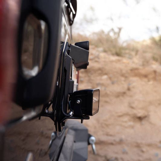The DV8 Jeep JL Spare Tire delete not only covers the hole left by removing your spare tire mount, but also features a license plate mount with included plate lights. On each side of the delete, a pod light can be mounted to provide supplemental lighting when off-road. The back-up camera and third brake light are mounted directly into the DV8 spare tire delete, maintaining full functionality.?