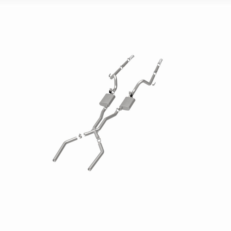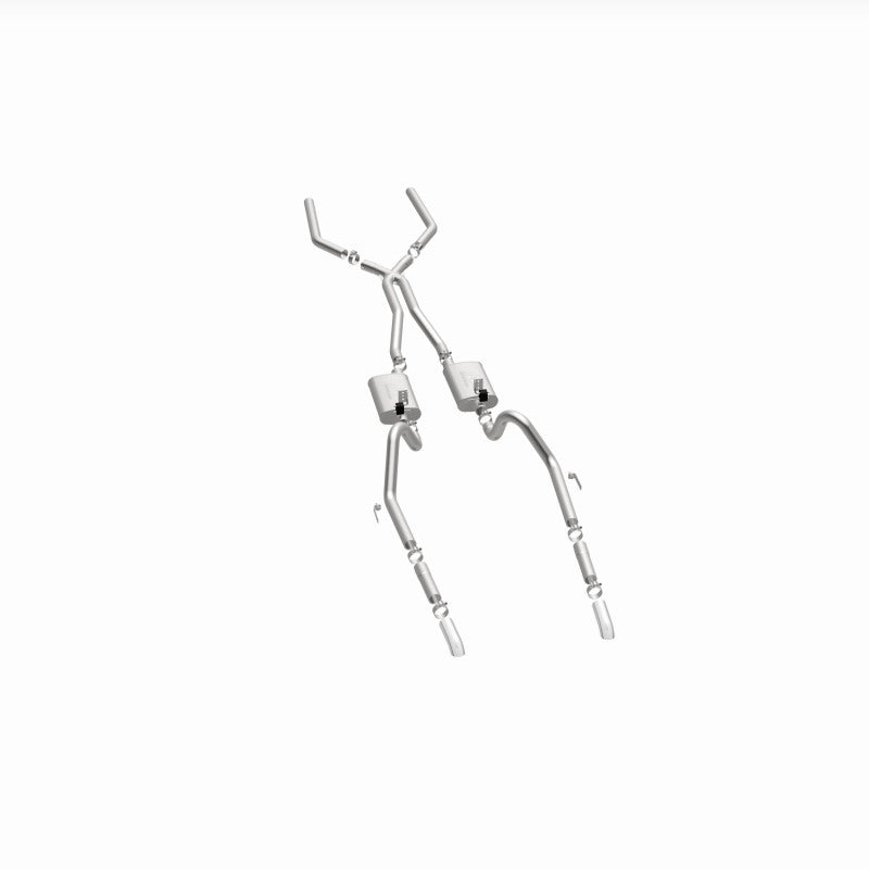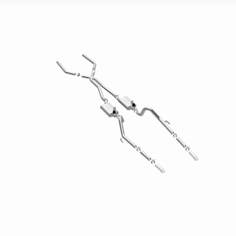 The MagnaFlow 1964-1966 Ford Mustang Street Series Crossmember-Back Performance Exhaust System 15815 brings enhanced engine sound and dyno-proven performance to your 2.8L, 3.3L, 4.3L, 4.7L 1964-1966 Ford Mustang with a healthy helping of our deep, resonant signature exhaust note at Moderate exterior and Mild interior sound levels. Thanks to its durable, corrosion resistant stainless steel design, this Ford Mustang exhaust system will handle whatever tarmac you decide to leave your mark on. This performance exhaust kit features a crossmember-back layout designed to replace your Ford Mustang's exhaust system from the crossmember on back. With its fast-flowing, mandrel bent 2.5in. main piping and 2 Straight-Through mufflers ending in a Dual Split Rear exit with 2.75in. Polished Welded-On Single Wall Turndown Cut Edge tips, your muscle car will be sounding as awesome as it looks. Extensive 3D scanning during development has resulted in a direct-fit design that you can easily install yourself. 15815 is produced using CNC precision robotic manufacturing techniques and is backed by MagnaFlow's limited lifetime construction warranty.