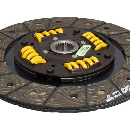 3001603 is a performance street disc and the most popular disc purchased. It features premium organic materials with high copper content for better heat transfer. Performance street discs allow for quicker shifting and smooth engagement. These discs feature a reduced marcel for faster shift action to complement ACT pressure plates. ACT spring-centered assemblies use bushings and cone springs similar to factory clutch discs. This creates frictional dampening, which improves clutch life and reduces noise. Quiet operation with increased strength and reliability.