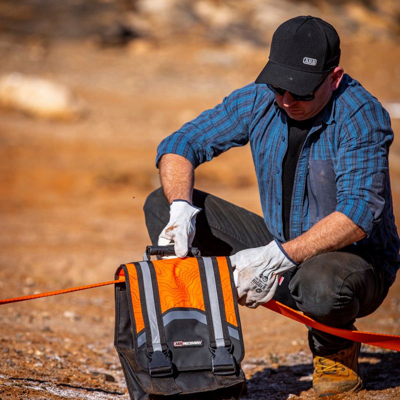 The updated ARB Weekender Recovery kit sports a new heavy-duty PVC outer shell and modernized color. The 600gsm PVC outer material provides a rugged exterior that is not only ideal for recovery situations, but also provides easy cleaning and prevents the bag from getting damp. Its slim design allows easy storage in your vehicle or ARB Outback Solutions drawers, and keeps vital recovery equipment at-the-ready. Included in the kit is the high-quality ARB 17,600 lbs snatch strap (ARB705LB), two type ?S Galvanized 4.75T rated shackles, one set of recovery gloves, and the rugged PVC recovery bag featuring dual internal pockets with the ARB topographic design print. Dual compartments provide space for a recovery dampener (ARB220, sold separately) to further complement your weekend recovery setup. When your vehicle is stuck in knee-deep mud, bogged in the desert, or aiding a recovery at the beach, reliability, performance and durability of your recovery gear is paramount. You can rely on ARB recovery products for you and your vehicle's safety.
