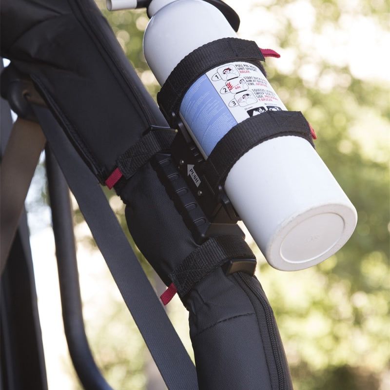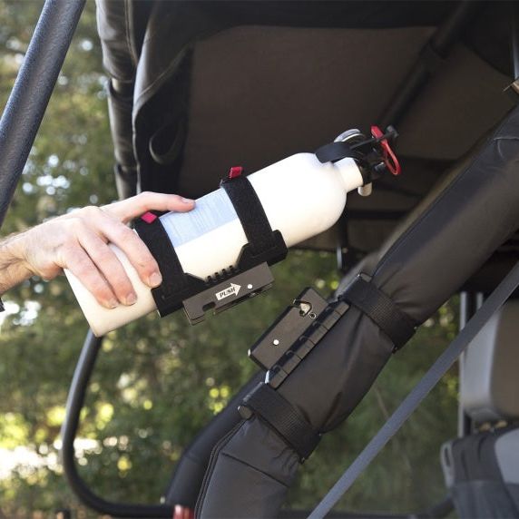 The Elite Fire Extinguisher Holder is the perfect way to store that essential fire extinguisher on your off-road rig. Featuring stunning billet-style cast aluminum construction, durable textured black powder coat and a spring-loaded release mechanism made from 316 Stainless Steel, the Elite Fire Extinguisher Holder sets the standard for both form and function. Designed to work with most 2.5 lb. round extinguishers, the holder can be mounted directly to a roll bar tube or to any flat surface with the included hardware and allows for smooth one-handed access if the need ever arises. (Extinguisher not included). Patent Pending.