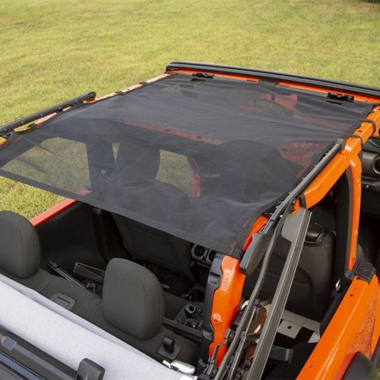 Looking for a summer top that is easy to install and remove? The Rugged Ridge Eclipse Sunshade gives the open air and top down feeling you want, while providing added protection from harsh sunlight. Featuring reinforced mesh construction with integrated straps, the half sun shade (13579.74) installs between the front portion of the JL sports bar and windshield to protect front seat passengers while the full-length sun shade (13579.75) is secured between the windshield frame and the rear portion of the JL sports bar to protect both front and rear passengers simultaneously. An all-in-one package, this sunshade is simple to install and does not require any modifications. By retaining access to the Jeeps top clamps, drivers can keep the shade installed while maintaining full functionality of the factory soft top. The Eclipse Sun Shade can stay in place year round- making you fully prepared for that first sunny day.