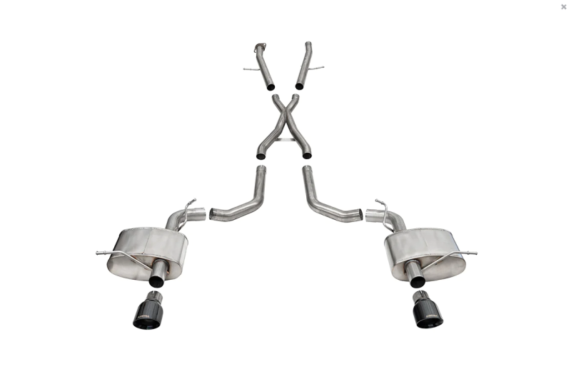 CORSA Performance's 2018+ Dodge Durango SRT Exhaust Offering Has Arrived! The Dodge Durango SRT catback exhaust assortment is available in both Sport and Xtreme sound levels allowing the driver to tailor the exhaust system to their exact sound profile. Made from 2.75 in. 304 stainless steel construction and featuring CORSA's Best-in-Class No Drone RSC(R) Technology, this is the ultimate Durango SRT exhaust system. CORSA's Sport sound level is 7 decibels louder than the stock exhaust system and offers an aggressive cold start, moderately aggressive exhaust note under acceleration while maintaining stock levels of in-cabin volume. CORSA's Xtreme system is 15 decibels louder than the stock system and noticeably more aggressive than the Sport system on both cold start and during acceleration while only inducing slightly more in-cabin volume. All exhaust systems come with dual wall stainless steel exhaust tips and come available in both polished and black PVD coating. CORSA Performance exhaust systems are made possible through a 25+ year commitment to perfecting the Science of Sound© and are proudly made in the USA and backed by a Limited Lifetime Warranty.