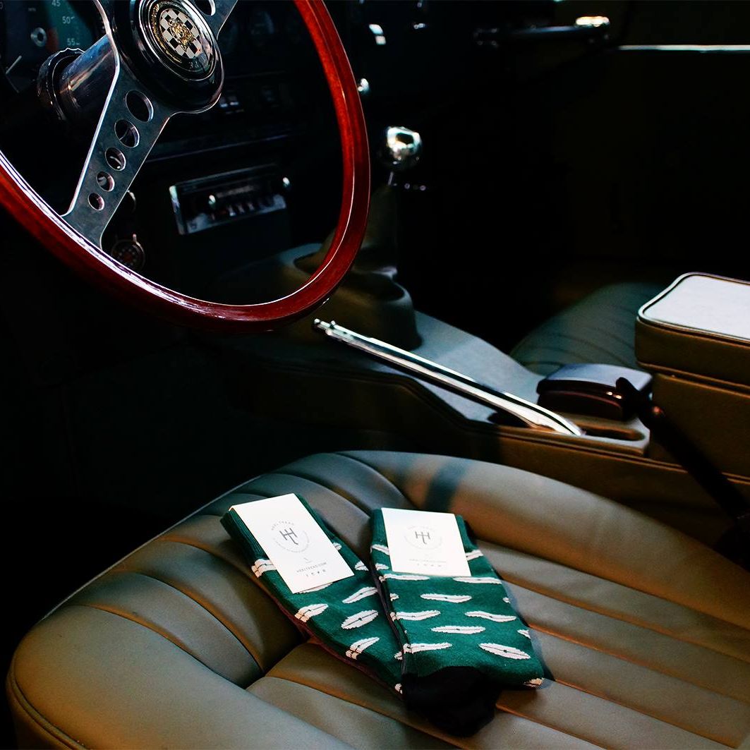 Enzo Ferrari called this Jaguar "the most beautiful car ever made." Its iconic front air intake was the inspiration for this design; simple, yet impossibly elegant. In British Racing Green, of course.