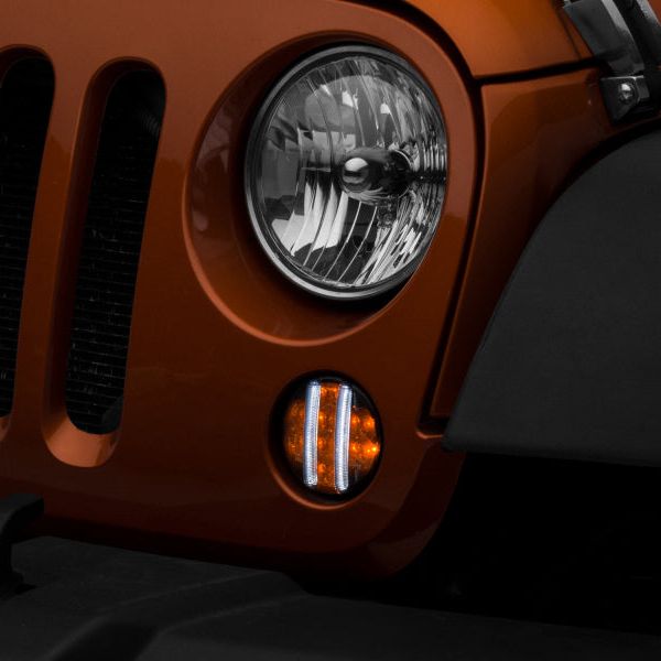 Upgrade the appearance and safety of your 2007-2018 JK Wrangler by installing a pair of Axial Smoked LED Front Turn Signals. Being much brighter than your Wrangler's stock incandescent bulbs, these Axial LED Turn Signal Lights will allow you to clearly be seen day or night. These Turn Signals also feature Daytime Running Light (DRL) accents for better visibility and modern styling. Raxiom manufactures their LED Turn Signal Lights to exacting specifications from the high quality materials. This set of two Turn Signal Lights feature durable, smoked polycarbonate lenses and employee (8) super bright amber LEDs for the turn signal / running lights. These Turn Signal Lights are weather-sealed to prevent dirt and moisture from harming the state of the art electronics found inside. Axial designed their LED Front Turn Signal Lights to be a direct replacement for your Jeep's original factory housings. The Daytime Running Light LED accents will require splicing into your Wrangler's running lights for operation. Detailed instructions are included. It should be noted that you will need to remove the grille in order to gain access to the mounting bolts. This pair of Axial Smoked LED Front Turn Signal Lights are specifically designed for use on 2007-2018 Jeep Wrangler JK models. Driver side and passenger side included.