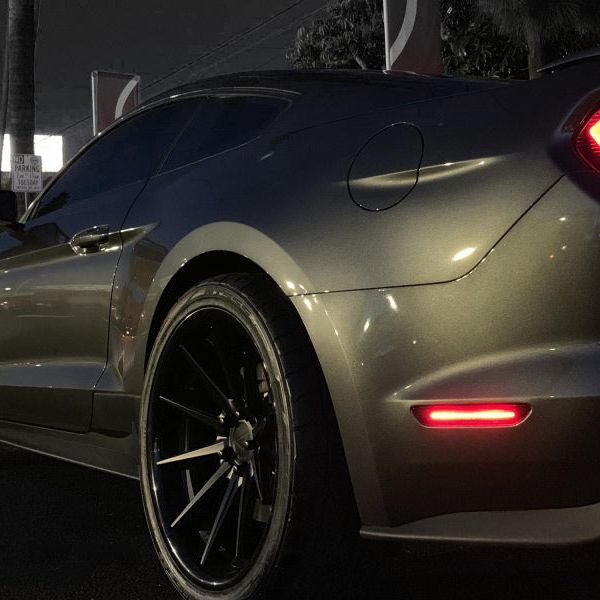 When lit the OEM rear side markers have an unsightly hot spot that looks dreadful. Installing a set of Smoked Side Markers will replace that ugly hot spot with a bright red, razor sharp LED strip for bold custom styling. A set of Smoked LED Side Marker Lights are a great way to upgrade the exterior appearance of your S550 Mustang. LED Side Markers are made in the USA and use powerful SMD LED focal strips to produce a bright laser-like light. The LEDs feature embedded transient voltage suppression and a constant-current driver to provide excellent, long lasting reliability. The smoked optical reflector looks identical to the original factory part and is ultrasonically welded together to prevent moisture from entering the housing. Installation of these LED Side Markers is 100% plug-and-play. There is no cutting, splicing or resistors required. Just pop out your factory side markers and disconnect the wiring harness. Plug the harness into the back of the LED Side Markers and snap them in place of the old ones. It's that easy!