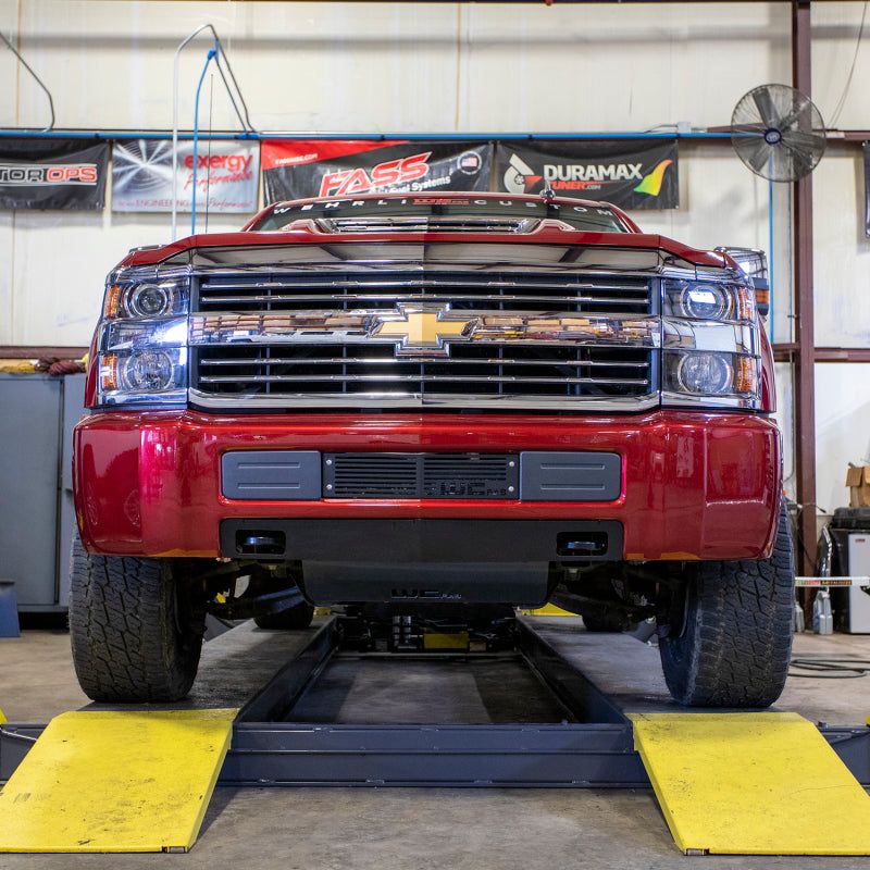 Removing the OEM plastic lower bumper valance on the 2015-2019 Chevrolet Silverado 2500 / 3500 HD trucks is a proven method for improving ground clearance and fitting more aggressive wheel and tire combinations, but leaves an unattractive, gaping void in the lower middle section of the bumper.To solve this issue on customer trucks getting suspension lifts at our shop, we've developed two Lower Valance Filler Panel options for trucks with and without tow hooks. These heavy gauge aluminum panels finish off the lower center cutout in the bumper providing a more aggressive look to lifted or leveled trucks.