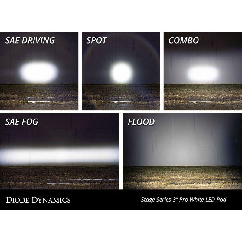 FeaturesModern TIR optics provide highest intensity on the marketBacklight accent feature available in white amber red and blueDurable powdercoated aluminum constructionIntegrated Deutsch-style connectorEngineered and Assembled in USAOverviewIntroducing the SS3 3 inch LED Pod! Featuring higher output intensity than any other 3 inch light on the market these LED pods have been designed for maximum functionality with custom-engineered TIR optics shining in highly useful beam patterns all in a durable package. All Stage Series LED pods are available in a cool white or selective yellow color and sport or pro power levels.Focused. Traditional optics like reflectors or simple lenses lose light internally and to glare so not all of the light shines on target. Instead the custom-engineered TIR optic in the SS3 collects all of the light from the LED and directs it only where you need it drastically reducing glare and improving total efficiency. The total intensity of the SS3 is much greater than other LED pods using basic optics or reflectors with a standard outer lens.Backlight Functionality. The Stage Series 3inch LED Pod is now available with a distinctive backlight in your choice of white amber red and blue. The SS3's backlight fully illuminates the TIR optic providing a more unique and modern look than the small indicator LEDs found in other products.Simple connections. All SS3 LED pods feature a custom-molded DT type Deutsch-style connector on the back and come with a 6-inch pigtail with bare leads.