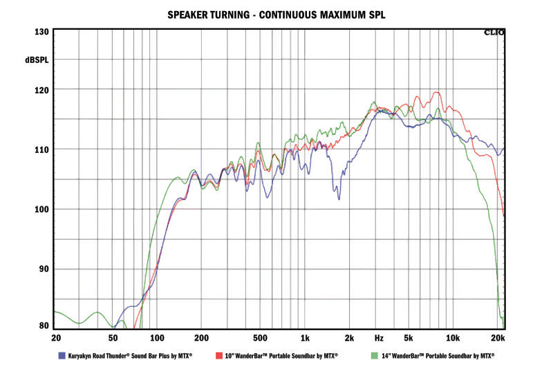 With 300-Watts of peak power and increased versatility, the Kuryakyn RoadThunder Sound Bar Plus by MTX takes handlebar-mounted audio to a new level. An internal four-channel amp powers two 2 in. x 3 in. full-range speakers with dual voice coils. Four high-frequency, 1 in., silk dome tweeters create powerful, distortion-free sound at any volume level. Durable, 1P66-rated housings are weather-resistant, while built-in heat sink and a self-protection circuit combats excessive heat and over/under voltage regulation. An internal 3.0 Bluetooth® receiver allows wireless connectivity to any Bluetooth-enabled smartphone or music device, and auxiliary input/output ports connect standard devices via a 3.5mm cable.