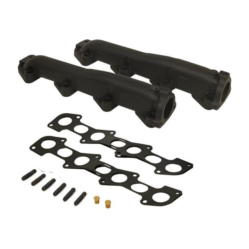 6.4L Power Stroke OE exhaust issues are not an 'if' but a 'when'. Prevent these issues with BD's stronger Exhaust Manifold & Up-Pipe Kit. Factory up-pipes are prone to failure due to age and heat cycling causing leaking exhaust, slower turbo spool, as well as additional exhaust noise and soot buildup. BD's larger diameter 304 stainless steel mandrel bent up-pipes with internally shielded expansion bellows, are designed to minimize restriction to the turbo. The BD Up-Pipes are a durable, longer-life replacement for the common Power Stoke problems as well as the perfect complimentary upgrade when replacing a turbo, manifolds, or other engine or transmission repairs. The 6.4L exhaust manifold set is crafted with a heavy duty 0.25" thick-walled Hi-Silicon ductile casting, this makes these manifolds thicker to combat cracking due to high exhaust temperatures. BD's exhaust manifold set is the perfect replacement for reliability, performance and peace of mind.
