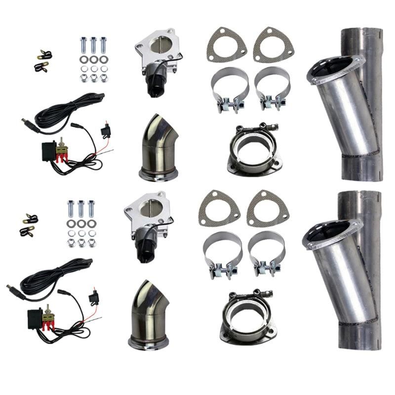 2.5" (63mm) Electronic Exhaust Cutout - Dual System - Aluminized Mild Steel wth Slip Fit and Band Clamps.
