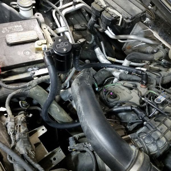 During the process of venting crankcase pressure back through your intake track, large amounts of oil, in the form of vapors can gather/accumulate in your intake tube, intake manifold runners and even dilute your gas, lowering its octane level. This happens on all engines and is even worse with forced inducted vehicles (supercharged and turbocharged) as crankcase pressures are increased. To combat this, we have developed an oil separator of our own design. Milled from solid billet aluminum this is a rock-solid piece. It has a knurled tank base for easy removal to drain the spent oil and an O-ring seal to prevent any leaks. Filtering consists of a fine mesh stainless steel screen that traps fine oil vapors and releases them once heavy enough to fall. They then pass through a 1/2" thick 1/16th" aluminum honeycomb filter where they grow every larger and then fall into the bottom. By the time the oil gets through the filter it's too heavy to be passed on into the intake. The tank holds 3 oz of fluid, while that may not sound like a lot, you shouldn’t see that much oil in your PCV system. Drain it every 2000-3000 miles and you will never come close to filling it.