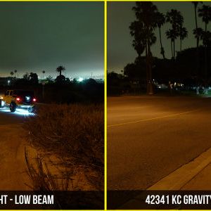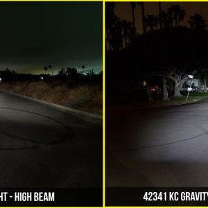 FEATURES-Gravity LED Pro 7" Headlights-Patented Gravity Projector Optics(GPO)-Hard Coated Polycarbonate Lens-Precision Die-Cast Aluminum Housing-DOT Compliant Low and High Beam with built-in Daytime Running Light-KC Engineered Polished Reflector Optics-Plug-n-Play for Jeep JK-***Note: Does not fit 17-18 Jeep JK Rubicon/Sahara editions or Jeeps equipped with factory LED headlightsLIGHT PERFORMANCE(PER LIGHT)-Raw Lumens: Low- 2,967 lm, High- 2,575 lm, DRL- 386 lm-Lux @ 10 Meters: Low- 400 lx, High- 700 lx?-Candela: Low- 40,000 cd, High- 70,000 cd-Beam Distance: Low- 400m, High- 529mSPECIFICATIONS(PER LIGHT)-Wattage: Low- 18W, High- 25W-LED Bulb: CREE: XPL/XPG2-Color Temp: 5000K-Amp Draw: 1.88A-Voltage: 9V-18V-IP Rating: IP68-Product Dimensions: W - 6.96" x D - 5.098"Gravity EXTREME OUTPUT AND EFFICIENCYThe Gravity LED Pro 7" headlight uses KC's patented Gravity Projector Optic (GPO). Utilizing this proprietary projector lens technology along with a GRD LED core, KC engineers were able to deliver a more controlled beam pattern while setting new industry standards in light shape, clarity and output. HIGH-PERFORMANCE REFLECTOR OPTICSThe Gravity LED Pro 7" Headlight features KC's patented Gravity GRD technology, which is engineered to direct every lumen from powerful LEDs into usable light output.HIGH/LOW/DRL FUNCTIONHigh/Low beams as well as DRL functionality come installed in this KC projector headlight to greatly improve visibility and clarity over factory Jeep headlights.DESIGNED FOR DURABILITYThe Gravity LED Pro 7" Headlight uses a durable die-cast housing and Polycarbonate lens, to tolerate the harshest climates and conditions.