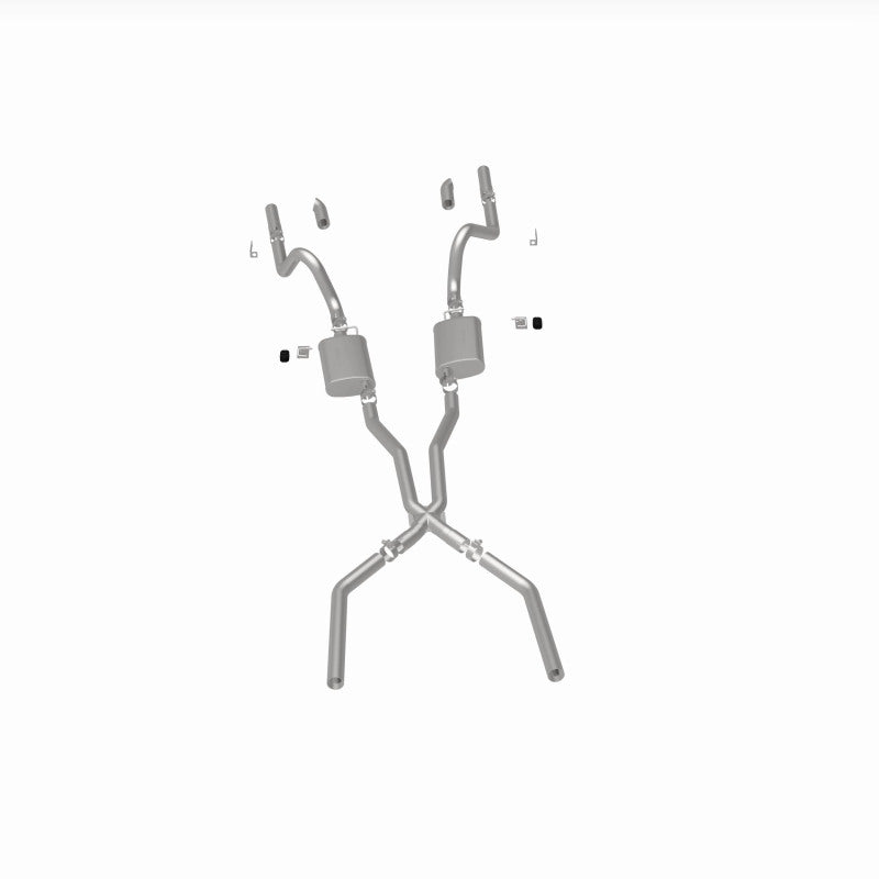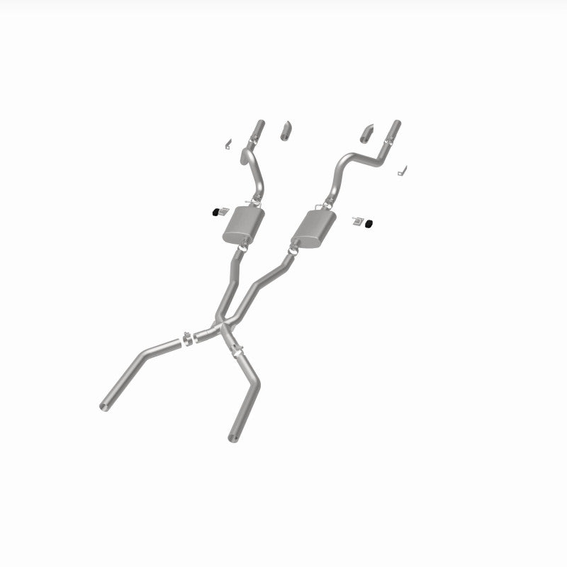 The MagnaFlow 1967-1970 Ford Mustang Street Series Crossmember-Back Performance Exhaust System 15816 brings enhanced engine sound and dyno-proven performance to your 3.3L, 4.1L, 4.7L, 5.0L, 5.8L, 6.4L, 7.0L 1967-1970 Ford Mustang with a healthy helping of our deep, resonant signature exhaust note at Moderate exterior and Mild interior sound levels. Thanks to its durable, corrosion resistant stainless steel design, this Ford Mustang exhaust system will handle whatever tarmac you decide to leave your mark on. This performance exhaust kit features a crossmember-back layout designed to replace your Ford Mustang's exhaust system from the crossmember on back. With its fast-flowing, mandrel bent 2.5in. main piping and 2 Straight-Through mufflers ending in a Dual Split Rear exit with 2.75in. Polished Welded-On Single Wall Turndown Cut Edge tips, your muscle car will be sounding as awesome as it looks. Extensive 3D scanning during development has resulted in a direct-fit design that you can easily install yourself. 15816 is produced using CNC precision robotic manufacturing techniques and is backed by MagnaFlow's limited lifetime construction warranty.