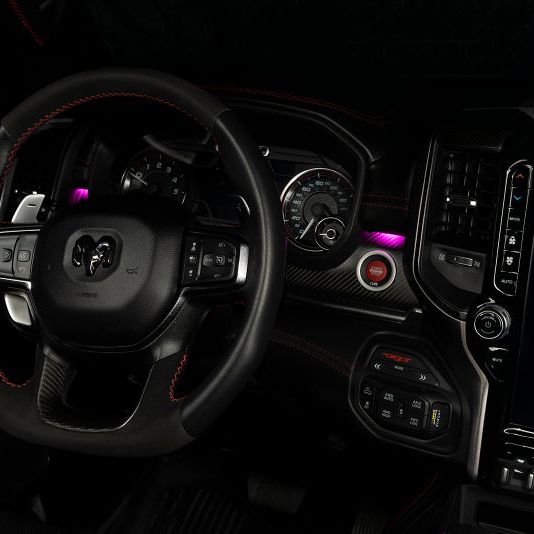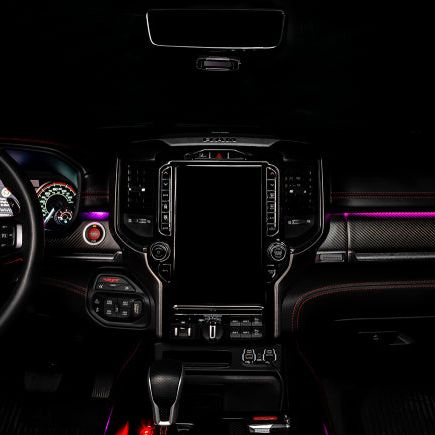Unimpressed with the dim white light in the dash of your new RAM truck or looking for an easy way to add unique style to the vehicle's interior? With the new ORACLE Lighting Interior Ambient Lighting ColorSHIFT(tm) RGB Kit for the 5th Gen RAM, you can turn the stock dash light into a vivid color accent! This kit is the perfect way to accent your interior cleanly and seamlessly. With an easy-to-use smartphone app, control your new RAM RGB dash lights to be any color imaginable for a style that's all your own. Our RAM ambient lighting dash kit uses ColorSHIFT(tm) RGB circuit boards that replace the existing circuit boards in the dash. Easily connect to our included RGB Bluetooth controller via plug-and-play connections. Connect the controller to the cigarette lighter adapter in the dash using the included connectors, and you can control the lights using the free app on your smartphone. Using the app, you have full control of the hundreds of colors, patterns, and brightness levels. Our cutting-edge RGB interior ambient lighting kit for 5th Gen RAMs is a great way to personalize your ride with show-stopping looks and industry-leading performance. Stand out with new, modern LED styling with ORACLE Lighting!