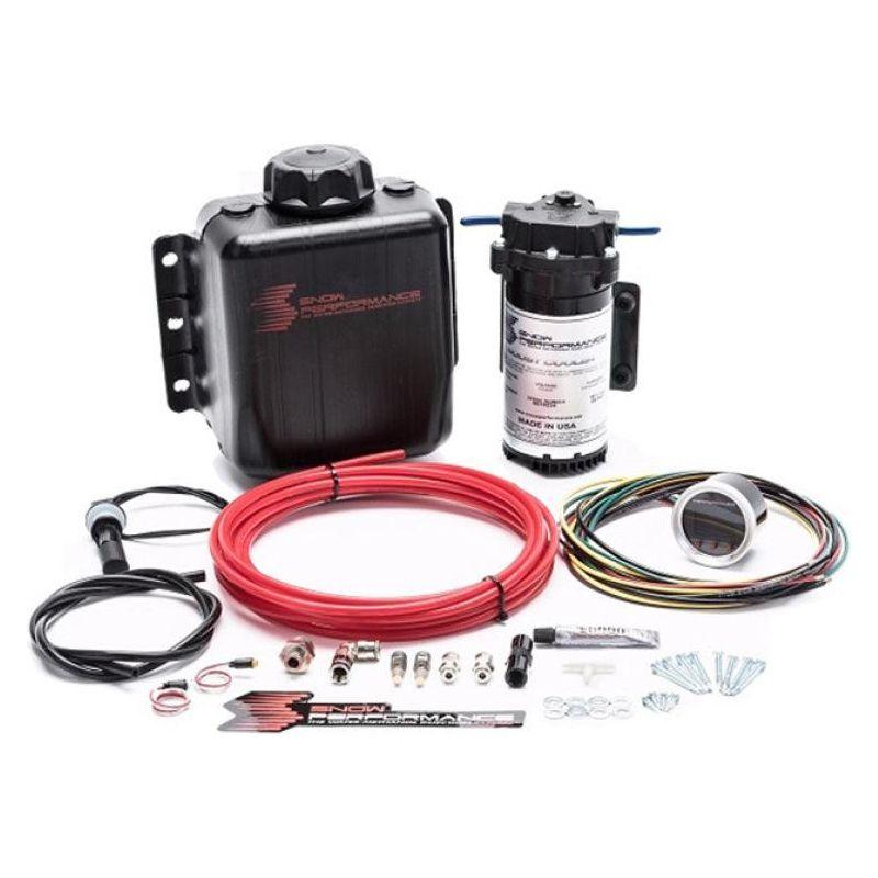 Unlock 50-70+HP on your boosted vehicle while decreasing your air temps by up to 100 degrees! Increase your pump gas octane by 25 points and make more power efficiently with a cooler running motor! The Snow Performance Stage 2 Boost Cooler water-methanol injection system is available for all forced induction applications (supercharged/turbocharged). The Stage 2 uses the progressive VC-50 controller (52mm Gauge) that proportionally injects more or less according to boost pressure. Start and full points are adjustable for engagement and delivery curve to match what the engine requires. Proportionally injecting according to boost pressure gives an accurate delivery of water-methanol and allows cooling and performance improvements over a wide range for improved drivability. The VC-50 (ISO 9001 Manufactured) controller offers the functionality of a boost gauge and water-methanol controller all in one! Highlighting a 7 color (Blue, White, Red, Yellow, Orange, Purple, Green) OLED screen displaying boost, percentage of injection, low level, secondary nozzle activation, prime button, and 2 fault codes directly on the screen you can tailor the controller to your OEM gauges or mix and match up to two colors.. Comes with easy to install quick-connect fittings and 1/4" high temp nylon tubing.