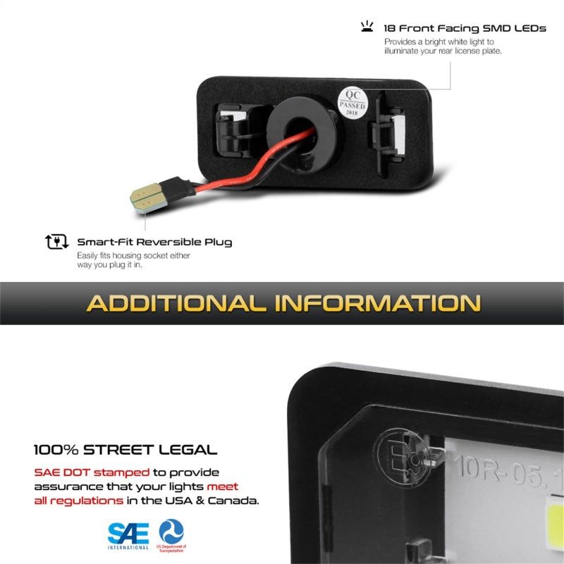 XTune License Plate Bulb Assembly Replacement; Pair; White 5500K; T10 Connector; w/Built In LED/Ultra Bright Plug And Play Installation;