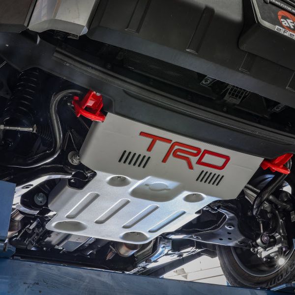 Add dedicated front recovery points to your Toyota Tundra. aFe POWER Tow Loops mount directly to the frame and are much safer than the factory tie-down loop when towing or recovering a stuck vehicle. The 3/4 IN solid steel loop is designed to safely withstand and distribute heavy loads allowing access to several recovery attachments for a strong and durable recovery point. Powder-coated red so they are easily recognized in the elements during off-road adventures. aFe POWER front tow hooks are constructed from 3/16 IN laser-cut, CNC machined steel brackets, and 3/4 IN solid steel bar. MIG welded for strength and durability. Bolts Directly onto the frame, using the front sway bar mounts with no drilling or modifications. Retains the front sway bar use while clearing the Active Aero front spoiler and factory bumper. (Patent Pending)