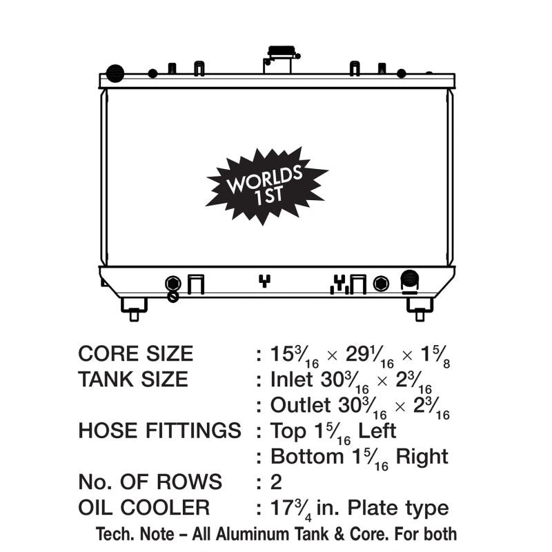CSF has over 5 decades of experience manufacturing radiators. So when it comes to keeping your engine cool and your Camaro running at its best, a CSF High-Performance All-Aluminum Radiator is the obvious choice. Designed to perform on the street or at the track, a performance radiator is a must-have for both high horsepower builds as well as race vehicles which need added cooling performance in motorsports environments. This radiator features a 2-Row core with CSF's exclusive B-Tube Technology: Unlike a regular oval shape "O" type radiator tube, CSF uses a specially engineered tube in the shape of a "B". These "B-tubes" are carefully formed and then brazed over the seam to seal. CSF is able to use thinner and lighter aluminum material (with better cooling efficiency) because this design is actually stronger than normal "O" shape tubes that are welded. The design (inlet in the middle of the tube that is seam brazed) increases the heat transfer surface area of the tubes by approximately 15% over regular tubes - producing the efficiency of two smaller tubes vs. one large tube within the same space criteria. With "B-tubes" you are able to get "dual liquid laminar flow". CSF also uses ultra efficient multi louvered fins that are carefully and precisely aligned to maximize airflow through each radiator core. Fin specifications are carefully measured and calculated for each application, and tested for maximum heat rejection efficiency in our wind-tunnel lab.