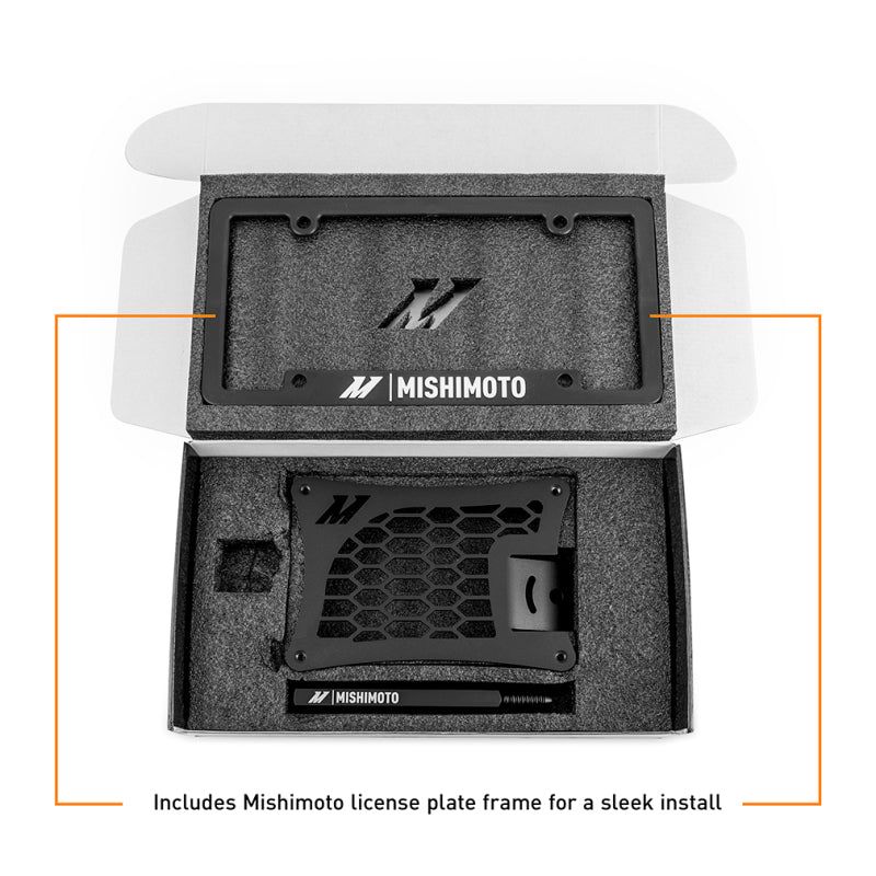 BMW designers poured hours of time into the front end of the G8X M3 and M4, crafting every duct and body line to flow seamlessly with the rest of the car…then your local dealership spent 5 minutes with a drill and four drywall screws attaching the front license plate to the bumper.----The front of the G80 wasn’t designed for a US front plate. Placing the plate in the center of the bumper obstructs air flow to the radiator while also creating wind resistance. Mounting to the side requires drilling into and ruining your brand-new bumper. Luckily, there's no need to worry about drilling holes in your new bumper because Mishimoto has a solution----Designed specifically for the 2021+ BMW G8X M3 and M4, our license plate relocation kit is constructed from high-strength, anodized, and powder coated 6061-aluminum. It mounts directly to the OEM tow hook location, allowing for a clean and seamless installation. We’ve angled the plate to match the lines of the bumper and mounted it securely using the factory tow hook location to improve aerodynamics and allow airflow through the cooling stack. Our license plate relocation kit includes all necessary hardware for an easy installation and, like all our products, this kit includes our signature Mishimoto Lifetime Warranty.