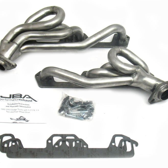 JBA shorty headers are one of the foremost performance upgrades you can bestow upon your beloved car, truck, or SUV. JBA Headers are significantly less restrictive than stock manifolds and dramatically increase the power and efficiency of your engine. Each header is constructed from durable stainless steel to endure the abuse of racing, towing, and daily driving – built to withstand it all. JBA’s proprietary Firecone collector design uses race proven technology for producing maximum power and torque gains where you drive most. Each system includes factory style emission connections and high-quality hardware for a professional no-leak installation.