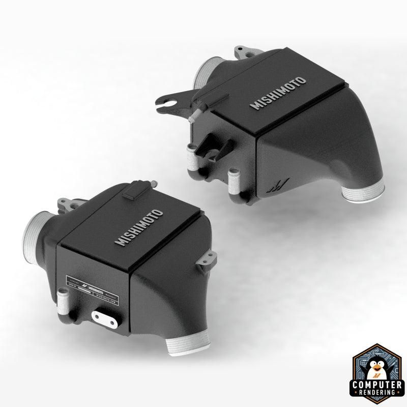 That’s why Mishimoto has developed our performance air-to-water intercoolers for the 2016 - 2024 Q50/Q60 3.0T. Our intercoolers feature a 49.8-percent increase in core volume over the stock intercoolers for improved heat transfer and maximum performance. That increase in core volume, combined with optimized tubes and fins, also allows our intercoolers to be over 51-percent less restrictive than stock. That means your turbos don’t have to work as hard, and the boost pressure they generate isn’t wasted shoving air through a restrictive intercooler. All those improvements result in dyno-proven charge air temperatures that are up to 23-degrees cooler than stock. Colder intake charge temps mean your VR30 can make the most of every drop of fuel, and we were able to produce power gains of up to 8 HP and 12 lb.-ft of torque without a retune. We also know that high boost pressures require strong components, which is why we constructed our intercoolers with cast aluminum end tanks. This design eliminates potential leak points and stress concentrations that welded tanks may suffer from. The included ancillary hoses and couplers ensure coolant and air flow reliably through the intercoolers, and the included engine cover spacers let you keep your extra cooling hidden for a stealth approach. Like all Mishimoto products, these performance intercoolers for the 2016 - 2024 Q50/Q60 3.0T are backed by our Mishimoto Lifetime Warranty.
