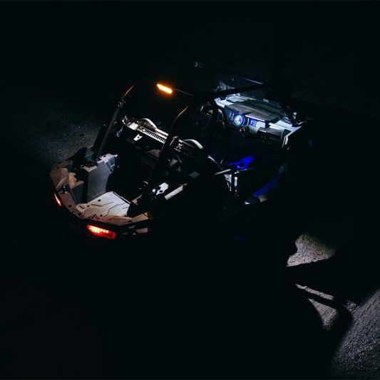 The RIGID Chase rear facing LED light adds safety and functionality to any UTV, rail, buggy, Jeep, or other off-road application by packing reverse, courtesy, strobe, running, and brake lights into a single compact light. A halo of powerful LEDs in red, amber, or blue around the perimeter of the aluminum housing can be used as a strobe for racing and chase applications, running light, or third brake light. The center portion of the RIGID Chase functions as a 715 lumen white light suitable for use as a Reverse or area light, and there's also a smaller downward-facing courtesy light for illuminating the cargo area. Whether it's used individually or wired in series, the RIGID Chase LED light is packed with features at a great value. Own The Night with RIGIDs rear facing Chase LED light.
