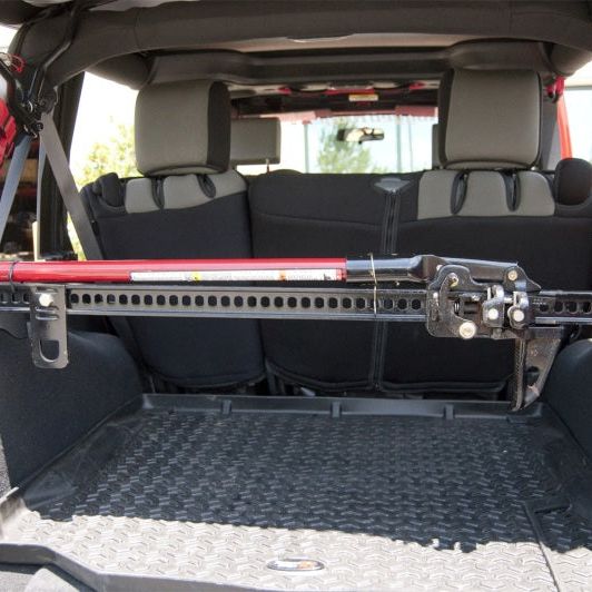 Get your Hi Lift style jack out of the elements with this roll bar mounting kit from Rugged Ridge. Storing your jack outside leaves it vulnerable to water, debris, ice and theft. These great new brackets allow you to secure your jack to the sports bar without sacrificing cargo area storage and increase the longevity and function of your jack! The simple no drill installation allows for easy removal and storage of the jack.