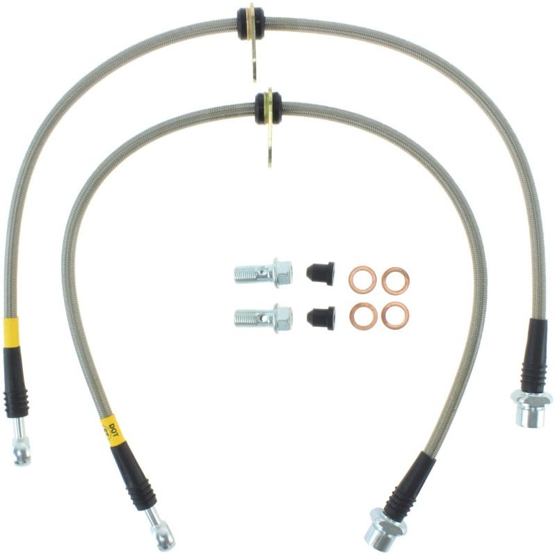 StopTech Stainless Steel Braided Brake Lines provide a quicker; firmer; more consistent pedal response by maintaining consistent brake pressure. Additionally; stainless steel lines provide precision brake modulation; especially during threshold braking. The improvement in pedal feel is more dramatic on older vehicles where the factory rubber line may have softened and swelled due to age. A variety of end fittings are available to meet application needs. All fittings are engineered for proper fit and durability. All necessary brackets and fasteners are included with each line kit.